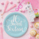 Turquoise Blue White Sweet 16 Birthday Party Paper Plate