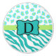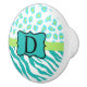 Turquoise Blue White Zebra Leopard Skin Monogram Ceramic Knob