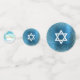 Add some extra style to your favourite B’nai Mitzvah’s celebration party with this customisable table confetti! Stunning, modern, sparkly gold faux foil handwritten script and Star of David with tiny blue dots against a turquoise blue watercolor background on one side mix with a white Star of David over a faux metallic blue background on the other. Personalise the custom text with their names and date of event. Matching and coordinating invites, address labels, stickers, banners, welcome signs and other B’nai Mitzvah goodies are also available in this trendy and special collection.