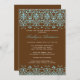 Start off your event off right with our Bridal shower invitation featuring beautiful Turquoise damask pattern on a rich brown background. Trendy Turquoise & brown colour combination. Just customise our invitation with your wedding shower information and you're all set to go. Available in other colour combinations at www.celebrateitinvites.com