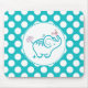 Cute turquoise butterfly and baby elephant and purple flowers over white and turquoise polka dot pattern. Customisable mouse pad template