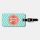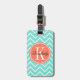 Turquoise Chevron with Orange Monogram Luggage Tag