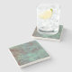 The coasters are gorgeous, a quality feel and heavy weight. They look like a precious archeological find. A rustic stone juxtaposed with a modern floral black and white print. I like the way the print goes slightly imperfect on the cut stone edges giving them a kind-of natural beauty.
