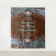 Turquoise brown leather cowboy country western wedding backdrop tapestry as country wedding welcome sign or rustic cowboy wedding photo backdrop.