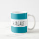 This personalised mug is designed to deliver a touch of individuality to your daily routine. The central feature of the design is a wide, customisable band that wraps around the mug, ready to be adorned with a name, rendered in a crisp, contemporary sans-serif font. The font's size makes a bold statement, ensuring the text is readable from across any room, making it a standout piece in any setting. The customisation feature on this mug makes it a perfect, thoughtful gift for friends, family, or colleagues for any occasion, be it birthdays, holidays, or professional milestones. It also serves as a charming addition to anyone's kitchenware, office desk, or as a keepsake for special events.In the spirit of personal expression, the mug is designed to be offered in a variety of colours. Regardless of the chosen hue, the design will maintain its distinct clarity and impact. The colours are selected to complement the clean lines of the text, ensuring that each personalisation stands out with elegance and simplicity. This mug is not just a drinkware item; it's a personal statement and a daily reminder of individuality and thoughtfulness. It is a blend of utility and personal expression, making it an essential item for anyone who values both practicality and a personalised touch in their daily lives.