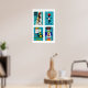 Turquoise Czech Matchbox Labels Grid Print, Vintage Ephemera Poster, Language Collection, Typography Focus, turquoise wall art 1