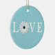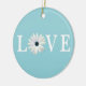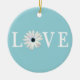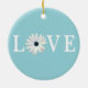 Love wedding ornament with a daisy in the word Love. Great for wedding favours or bridal shower favours, and perfect for the bride and groom's first Christmas!