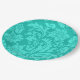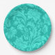 Turquoise and black damask print paper plate. This item is part of a collection that is customisable.