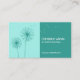 The wind blows fluffy dandelion seeds across this card unifying both the light and deep turquoise text panels. The dandelion seeds continue on their path on the back of the card above your contact and/or company information.