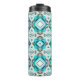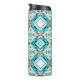 This design features a geometric pattern with a repeating diamond shapes motif with blurred, feathered edges radiating outward. The overall effect combines symmetry, energy, and depth — a balance of tribal feel and modern geometry in turquoise, grey and cream.