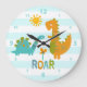 Turquoise Dinosaur Boy Nursery Roar Kawaii Cute Large Clock