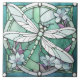 Turquoise Dragonfly Art Nouveau Deco Stained Glass Ceramic Tile