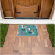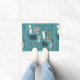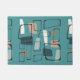 An abstract art design inspired by early 20th century mid century modern patterns, with geometric deformed squares in teal green and gold, with a turquoise background.