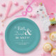 Turquoise Eat Drink & Be Sixty Retro 60th Birthday Paper Plate