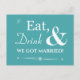 Turquoise Eat Drink We Got Married Retro Elopement Postcard
