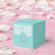 Simple and sophisticated Elegant Lace Wedding Favour Boxes featuring a white lace doily motif on a light turquoise faux vintage paper background. These classic and stylish boxes are perfect for a rustic wedding. Easy to customise with your wedding details. Click "Customise It" to find more personalisation options.