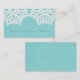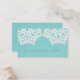 Simple and sophisticated Elegant Lace Wedding Place Cards featuring a white lace doily motif on a light turquoise faux vintage paper background. These classic and stylish escort cards are perfect for a rustic wedding. Space is given on these classy and stylish escort cards to write in the names and table numbers where each of your guests will be seated at your reception. Click on the "Customise It" button to find additional personalisation options.