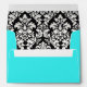 Turquoise Envelope with damask pattern inside. Wedding invitations fit in this envelope and can be fully customised. Matching wedding stationery is available in this store.