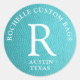 Turquoise faux leather encircled monogram classic round sticker