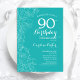 Turquoise Floral 90th Birthday Party Invitation