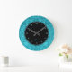 Turquoise Floral Faux Leather Embossed Look Large Clock