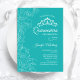 Turquoise White Floral Quinceanera Birthday Party Invitation. Minimalist modern design featuring botanical outline drawings accents and typography script font. Simple trendy invite card perfect for a stylish female 15th bday celebration. Can be customised to any age. Printed Zazzle invitations or instant download digital printable template.