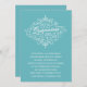 This elegant quinceanera party invite features a pretty calligraphy script, whimsical vintage flourishes, and a lovely turquoise blue background.
