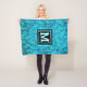 Turquoise foliage leaves pattern modern monogram fleece blanket