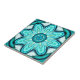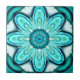 Ceramic tile with an original fractal design by Anne Vis in turquoise blue, green and teal in the shape of a flower star. Perfect for a bathroom!