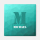 Monogram Personalise with your custom initial and name. Teal turquoise gradient geometric mesh pattern triangles ombre.