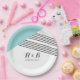 Modern and trendy Geometric Stripe Wedding Paper Plates with a turquoise triangle and thinly striped accent. These simple yet elegant plates are set up to be easily customised with your wedding information. Find more customisation options by clicking Customise It.
