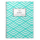 Turquoise Geometric Waves Pattern Personalised Notebook. Customisable modern notebook featuring a turquoise and white geometric pattern. This modern and chic notebook will be perfect as a personalised gift.