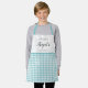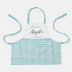 Custom kitchen apron feature classic turquoise gingham check with personalised name and text. Great personalised kitchen apron for kid. And these mother daughter matching cooking aprons make a great gift for Mother's Day, Grandparent's Day, birthdays and other special occasions.