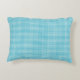 Turquoise gingham pillow displayed on a neutral