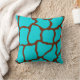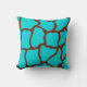 A bright turquoise and brown giraffe print decorates this throw pillow. The design is from original art.
