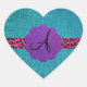Faux turquoise/aqua glitter background, pink leopard pattern stripe and purple glitter scallop circle and monogram letter change to any letter a,b,c,d,e,f,g,h,i,j,k,l,m,n,o,p,q,r,s,t,u,v,w,x,y,z Ideal for bride and groom weddings, wedding showers, engagement showers, engagement party, anniversary, save the date, bachelorette party, birthdays and much more featuring an elegant and traditional fancy lettering