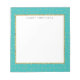 Features a gold bordered frame, against a turquoise and gold glitter pattern background. Personalise the notepad with your own name or text.