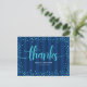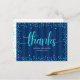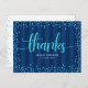 Turquoise glitter script graduation navy thank you postcard