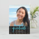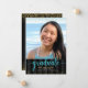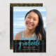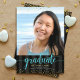 Be proud, rejoice and showcase this milestone of your favourite grad! Send out this stunning, modern, sparkly turquoise blue typography script against a black striped background with gold dots, personalised photo announcement for an event to remember. Personalise the custom text with your grad’s name, school and class year. Matching invites, thank you cards, cap toppers, napkins, plates and other graduation goodies are also available in this trendy and stylish collection. Guaranteed to add stylish fun to her special occasion!