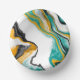 Turquoise, Gold, Marble Fluid Art Paper Plate
