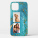 Turquoise Gold Marble Stone Monogram Photo Case-Mate iPhone Case