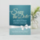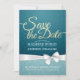 Elegant Gold Handwritten Typography Script with Vintage Turquoise and White Ribbon Save The Date Card Templates.