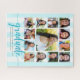 Be proud, rejoice and showcase this milestone of your favourite grad. Create this girly, stunning, simple, modern, personalised high school graduation K – 12 photo collage jigsaw puzzle for a keepsake you’ll always treasure. A fun, elegant visual of turquoise blue glitter script typography, along with her name, class year, and school and 13 photos of your choice overlay a light turquoise aqua blue and white striped background. Choose from five different sizes. Personalise the custom text with your grad’s name, school and class year. Matching invites, thank you cards, cap toppers, napkins, plates and other graduation goodies are also available in this trendy and stylish collection. Guaranteed to preserve cherished memories of her special occasion!