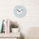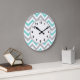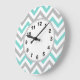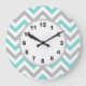 Turquoise, Gray, Wht Large Chevron ZigZag Pattern Clock