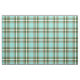 Turquoise Green Brown White Tartan Squares Pattern Fabric