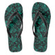 Turquoise green polka dot pattern on black thongs