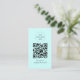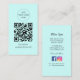 Turquoise Green QR code Business Card with social media icons on back side. You can also change the background colour of the QR code. Minimal Clean Pastel Business Card.