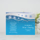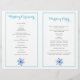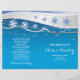 A lovely winter folded wedding ceremony and party program displaying rows of beautiful white and blue snowflakes, a silver grey waved line and grey stars on turquoise background. On the back there are blue snowflakes and aqua borders. If you fold it in half you will get a booklet style wedding program for your Christmas wedding. The value paper type is the one you should choose as it folds well.