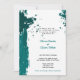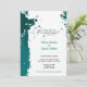 Dark turquoise paint splatter decorates the modern marriage celebration invitation. Change the fill colour to match the flat card to your wedding colours.