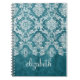 Turquoise Grungy Damask Pattern Custom Text Notebook